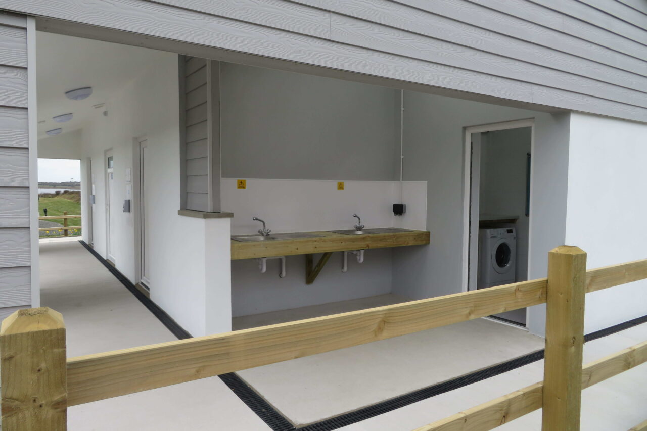 - Ardal gwaredu gwastraff toiled cemegol a gwastraff llwydŵr budr.